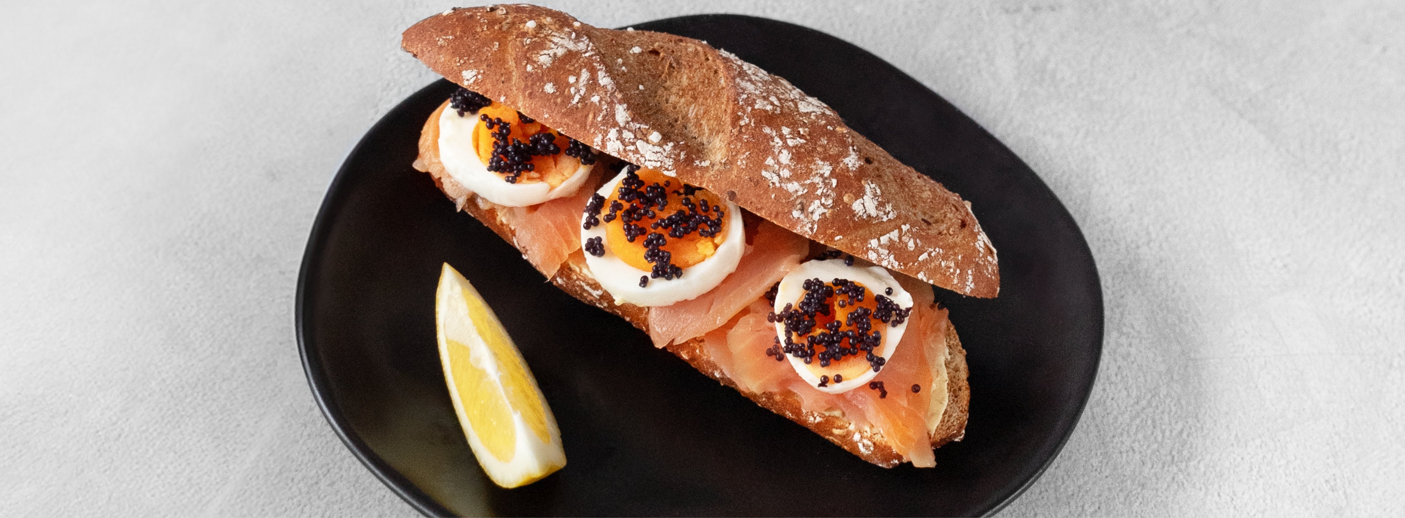 Die Butter bei Raumtemperatur weich werden lassen, dann leicht schaumig schlagen. Den gepressten Knoblauch und die KrĂ€uter nach Wahl (z.B. Dill, Zitronengras, Koriander) hinzufuÌgen. FuÌr noch mehr GeschmacksintensitĂ€t etwas Senf nach Wahl hinzufuÌgen. Mit Salz und Pfeffer wuÌrzen. Die untere HĂ€lfte des Kornspitzes mit KrĂ€uterbutter (Alternative: essfertige KrĂ€uterbutter) bestreichen und mit RĂ€ucherlachs belegen. 2 â 3 Scheiben hartgekochtes Ei darauf geben und mit Kaviar garnieren. Mit ein paar Tropfen frisch gepresstem Zitronensaft abschlieĂen.